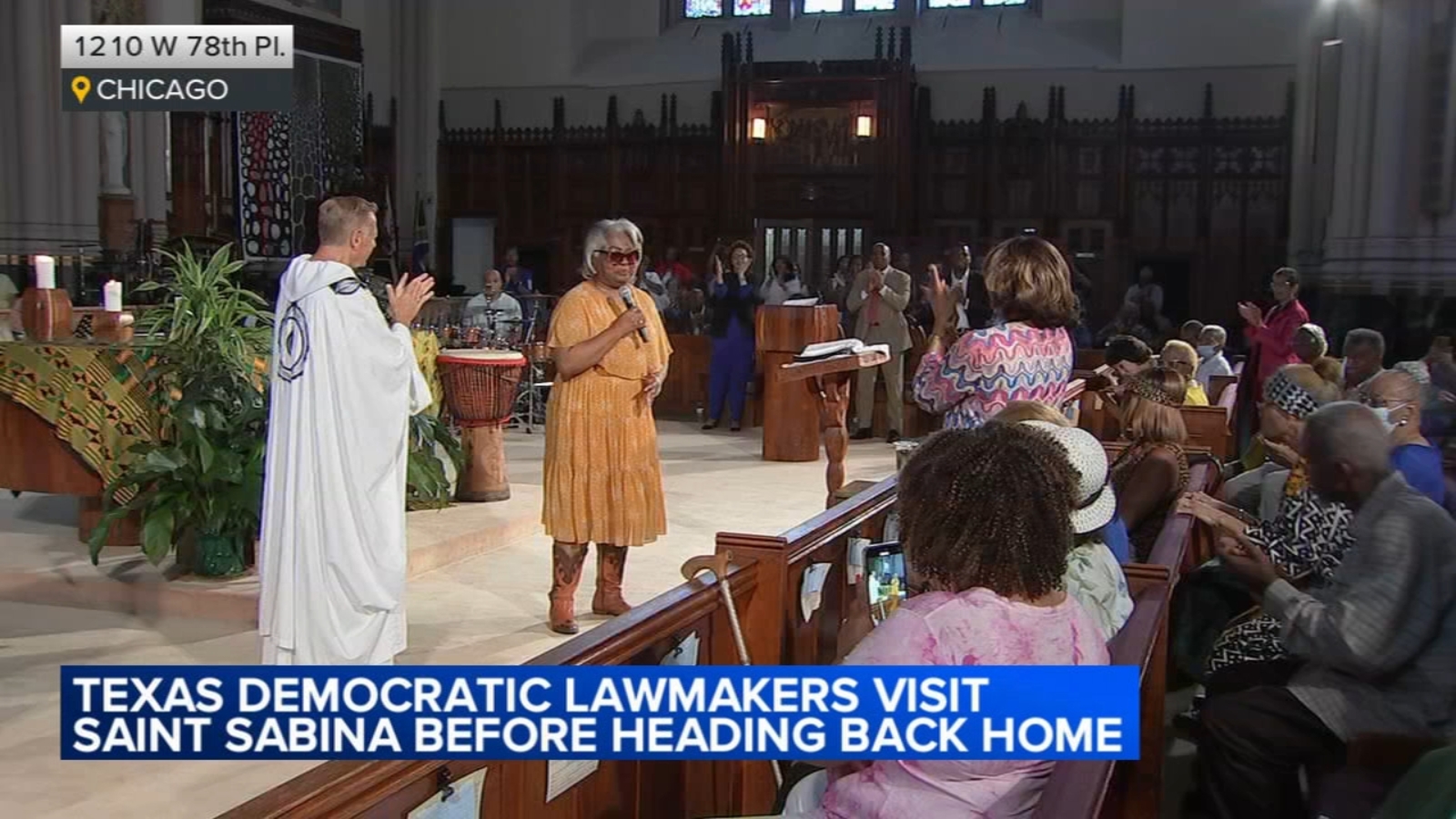 3+ mon, 1+ week ago (167+ words) CHICAGO (WLS) -- Texas House Democrats who fled to Illinois are now getting ready to head back to the Lone Star State. They spent time at Saint Sabina Church Sunday on the city's South Side. The lawmakers have been in Illinois the past few weeks protesting congressional redistricting in their state. Over a dozen of the state legislators arrived at Saint Sabina to a standing ovation from the congregation as they prepare to return to Texas this week. The lawmakers came to Saint Sabina last weekend and enjoyed it so much they wanted to come back. They worshipped together and shared this message of thanks with churchgoers. RELATED | Texas Democrats join rally downtown Chicago to protest Republican redistricting The Texas lawmakers left their state to block a quorum during a special session and prevent a vote on a controversial restricting plan…...
